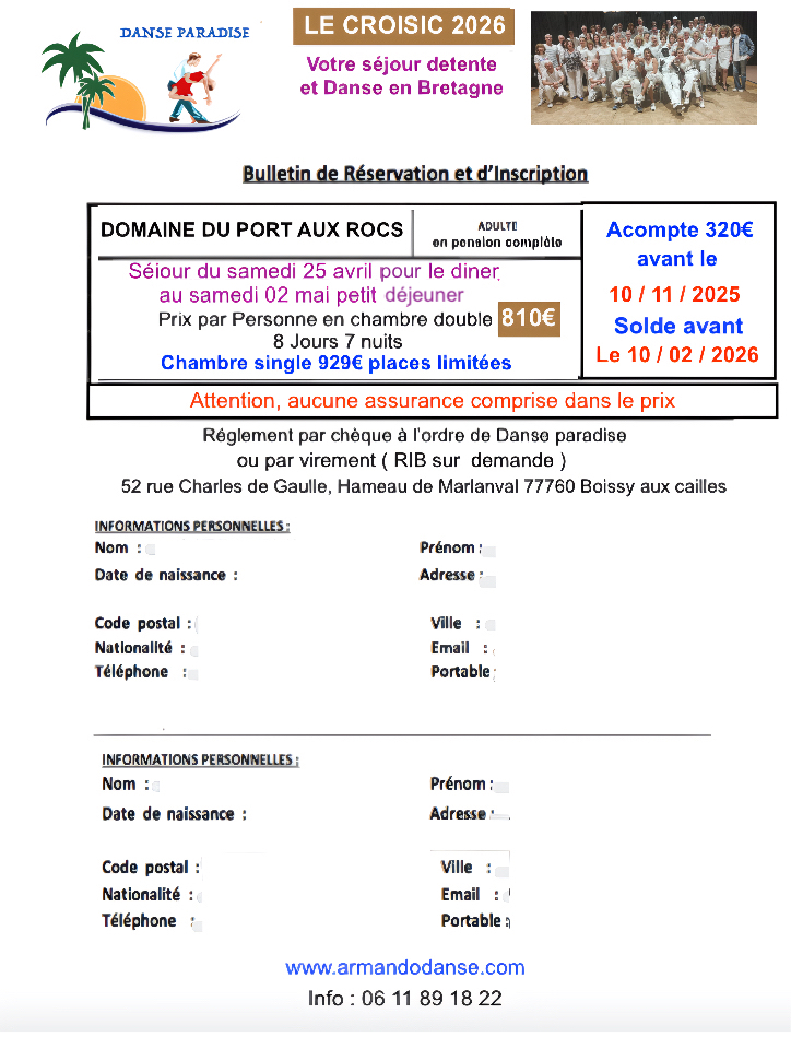 Téléphone : 06 11 89 18 22 (Armando)